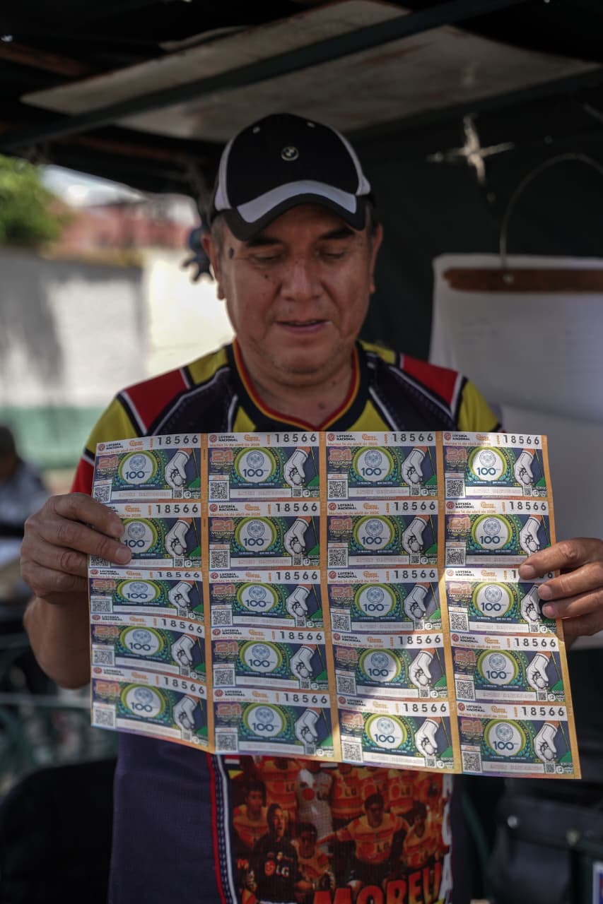 Sentado bajo la sombra tenue de la Plaza del Carmen, Livio Torres acomoda con paciencia los “cachitos” de lotería sobre su pequeño puesto. Viste una playera apenas desgastada del Monarcas Morelia, de cuando fue campeón por allá en los años 2000, una gorra negra y pantalón oscuro. A su lado, dos radios le hacen compañía, mientras su voz, siempre dispuesta a la charla, rompe el silencio entre boletos que van de los 20 a los 120 pesos.