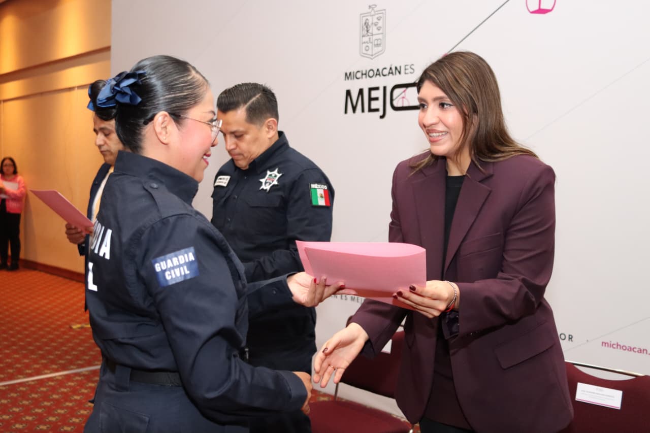 La secretaria de Igualdad Sustantiva y Desarrollo de las Mujeres Michoacanas, Alejandra Anguiano, señaló que “se ha dado un paso decisivo en la reestructuración del estado con la certificación de más de 1,700 policías en perspectiva de género”.