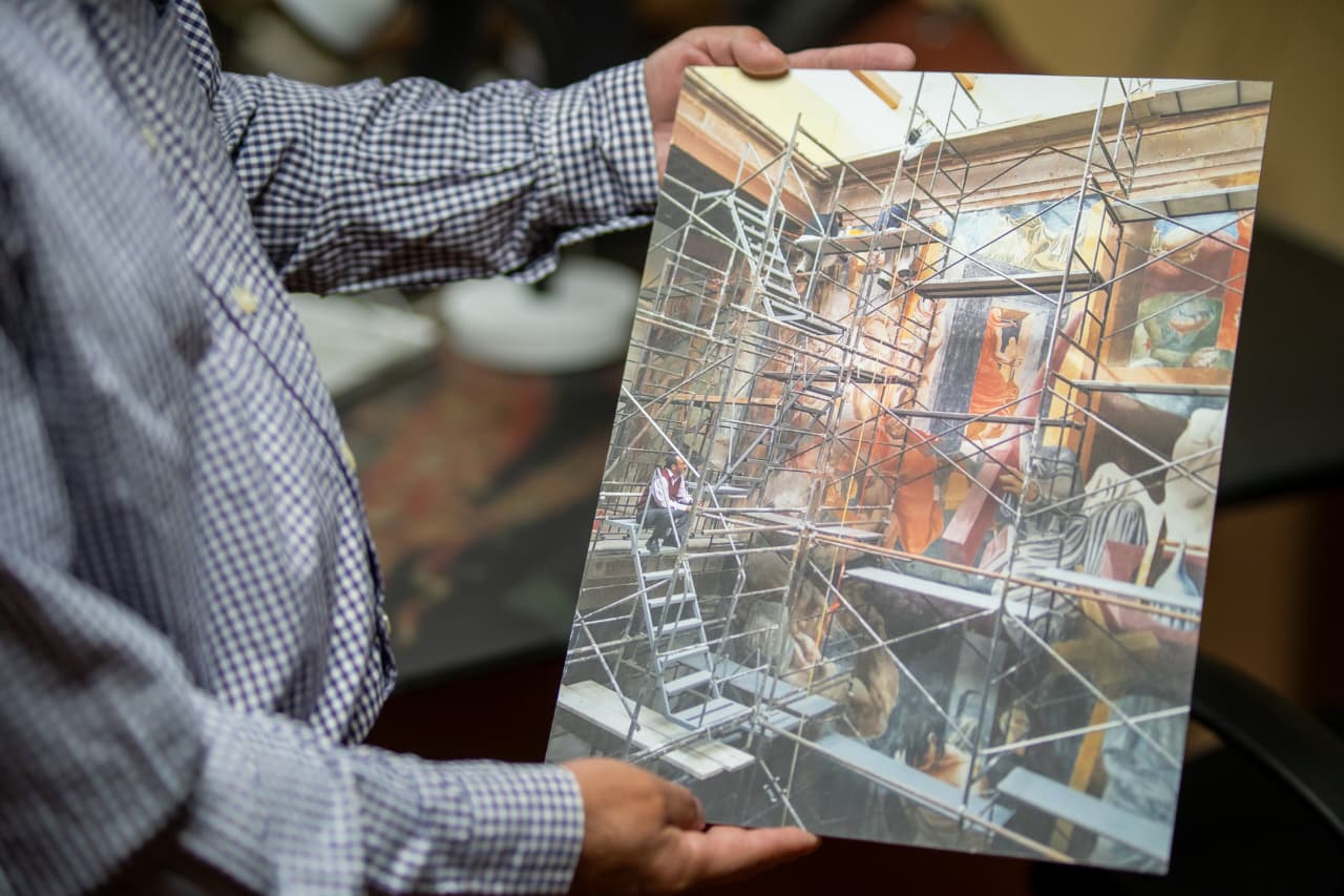 “Para lograr una perspectiva correcta en la fotografía de un mural tienes que estar a nivel o lo más alto posible”, explicó Hernández Camargo. El objetivo era capturar cada obra respetando su composición, iluminación y equilibrio de color, de modo que la fotografía pudiera reflejar con fidelidad la pieza original.