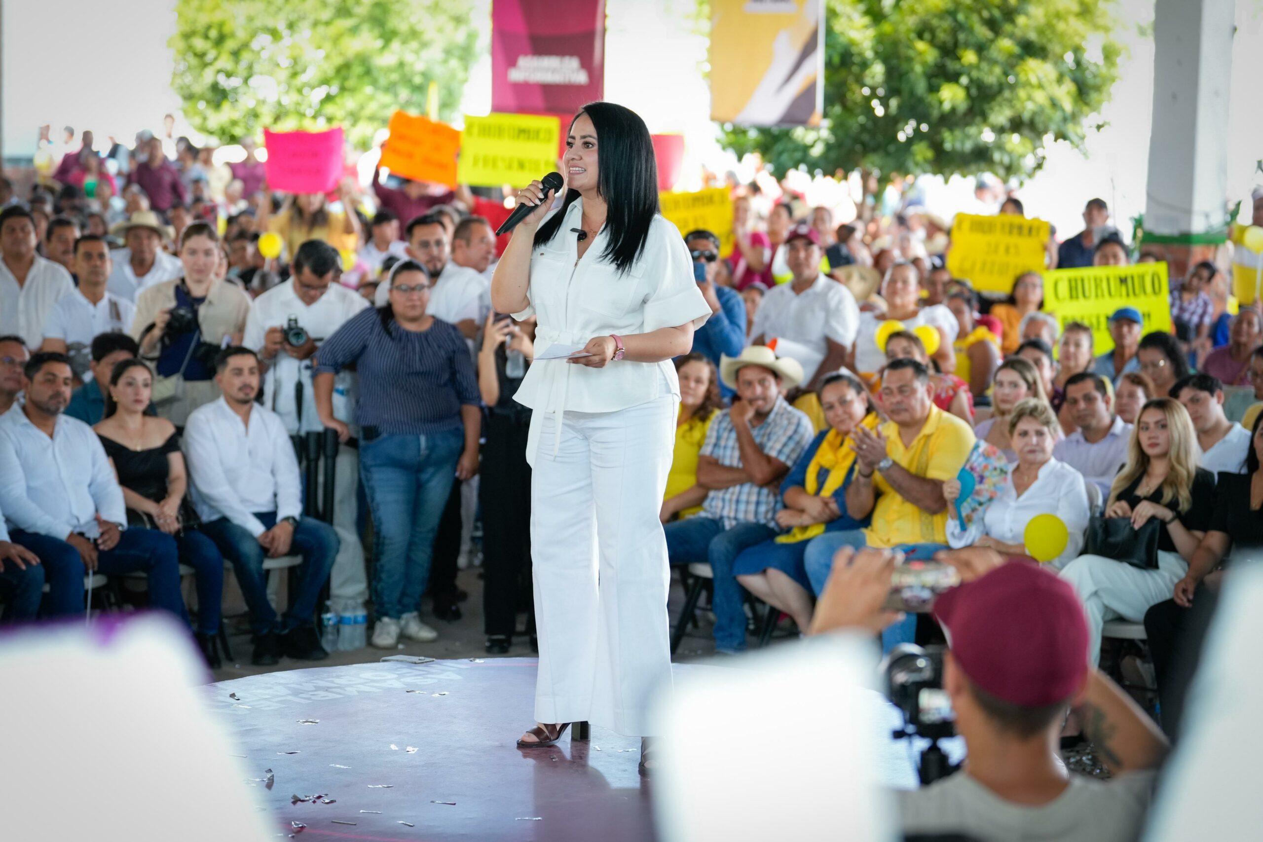 Antes de concluir, afirmó que una mujer podría encabezar la continuidad del proyecto de izquierda en Michoacán. “¡Una mujer dará continuidad a la izquierda en Michoacán!”, subrayó ante los asistentes que respondieron con aplausos.