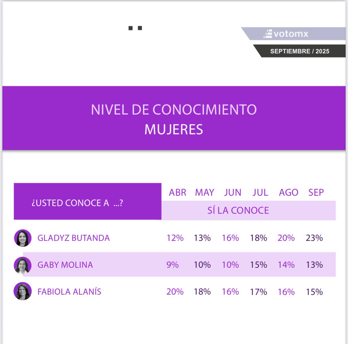 De acuerdo con la encuesta de Voto Mx, levantada el 29 de septiembre de 2025, el 33 % de los michoacanos la prefieren como candidata, por encima de Gabriela Molina (25 %) y Fabiola Alanís (19 %).