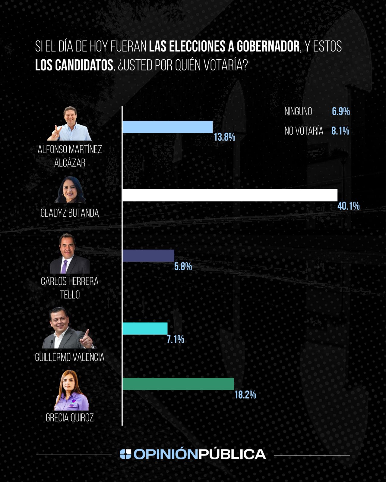 Además, en su careo como candidata, Gladyz Butanda sale victoriosa con el 40.1 % de los votos, una cifra casi 22 puntos superior a la que obtendría el segundo lugar, siendo la mujer más votada en todos los escenarios.