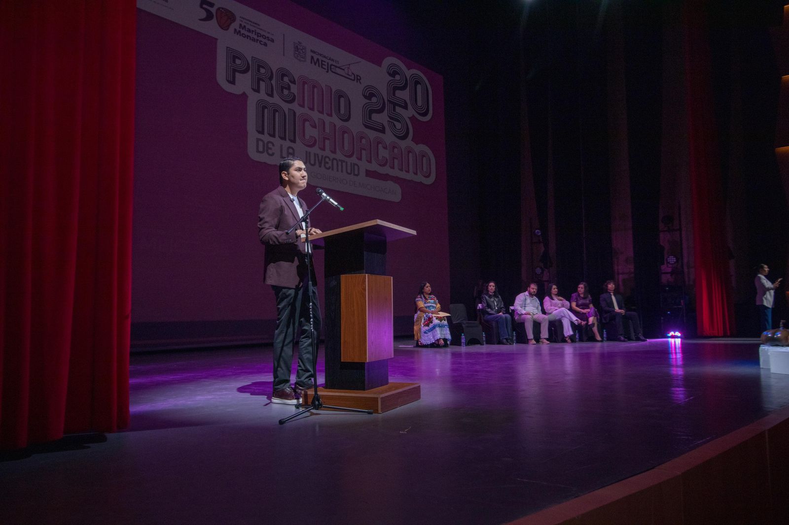 El Gobierno de Michoacán, a través del Instituto de la Juventud Michoacana (Ijumich), entregó las condecoraciones del Premio Michoacano de la Juventud 2025 en el Teatro Mariano Matamoros.