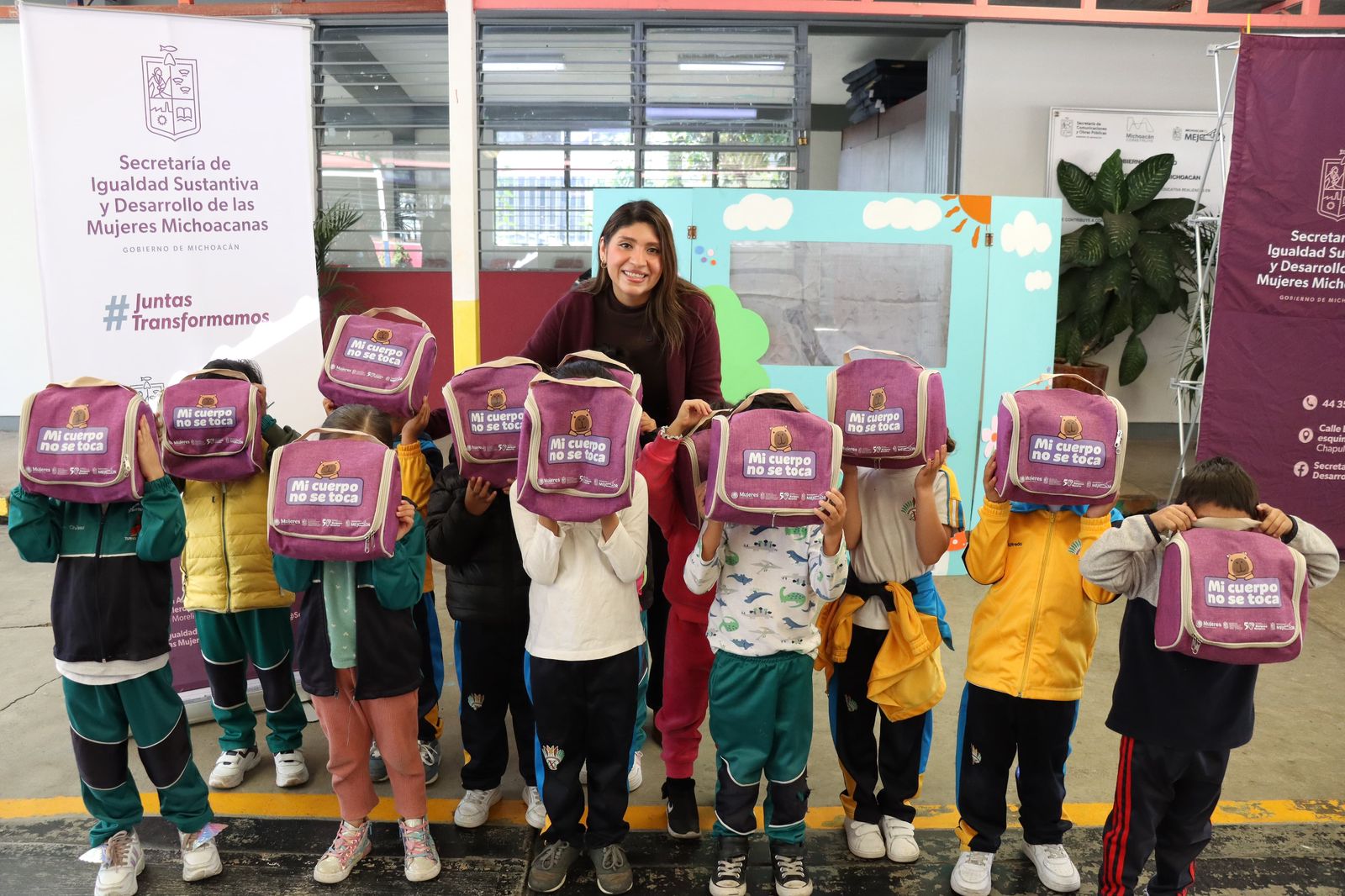 La secretaria de Igualdad Sustantiva y Desarrollo de las Mujeres Michoacanas, Alejandra Anguiano, visitó el Jardín de Niños Xicoténcatl, en Morelia, para llevar el “Capicuento”, una estrategia pedagógica y lúdica enfocada en la prevención del abuso sexual infantil.