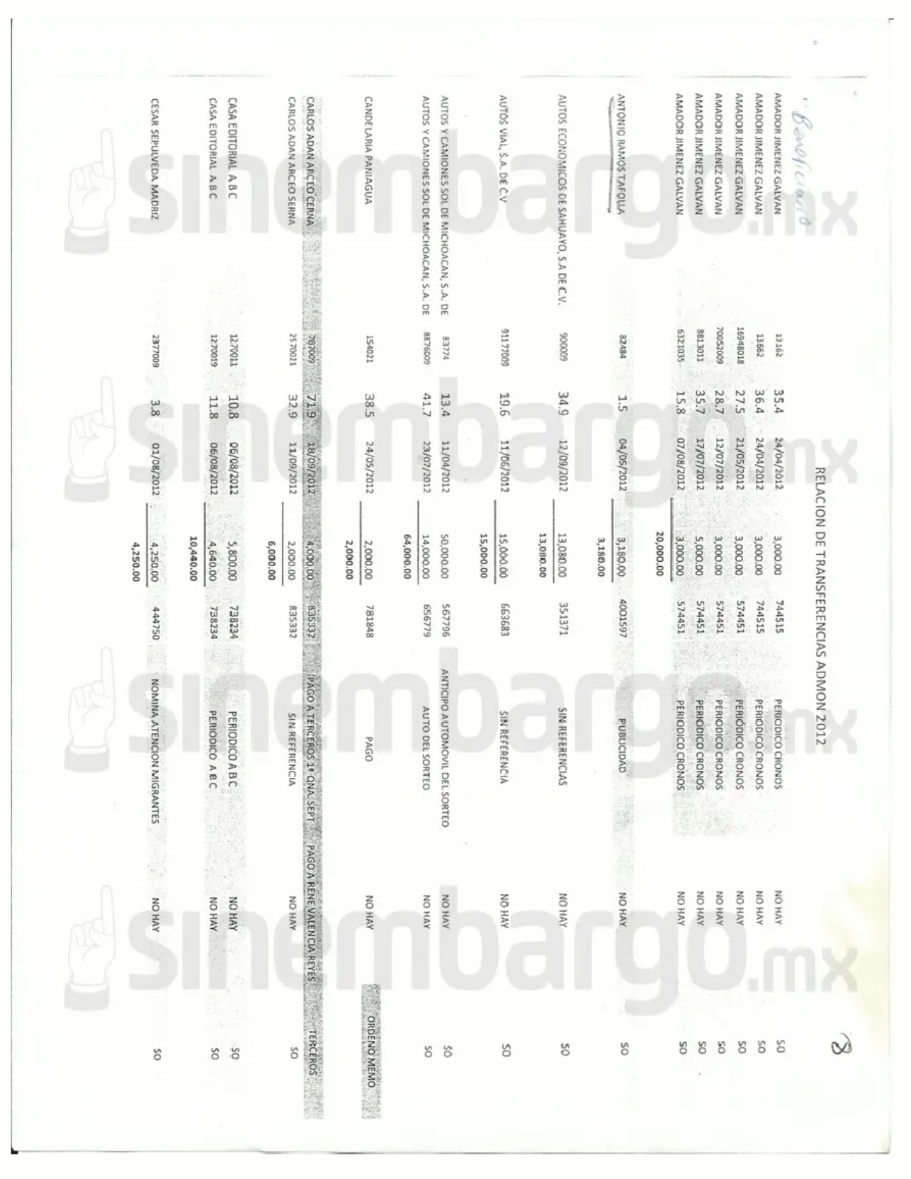 La investigación, que comprende transferencias registradas entre mayo y septiembre de 2012, también apunta a contratos con empresas que recibieron recursos por servicios de obra o construcción sin evidencias de ejecución concreta, lo que genera sospechas sobre la posible utilización de fondos municipales para beneficiar a terceros con presuntos vínculos delictivos.